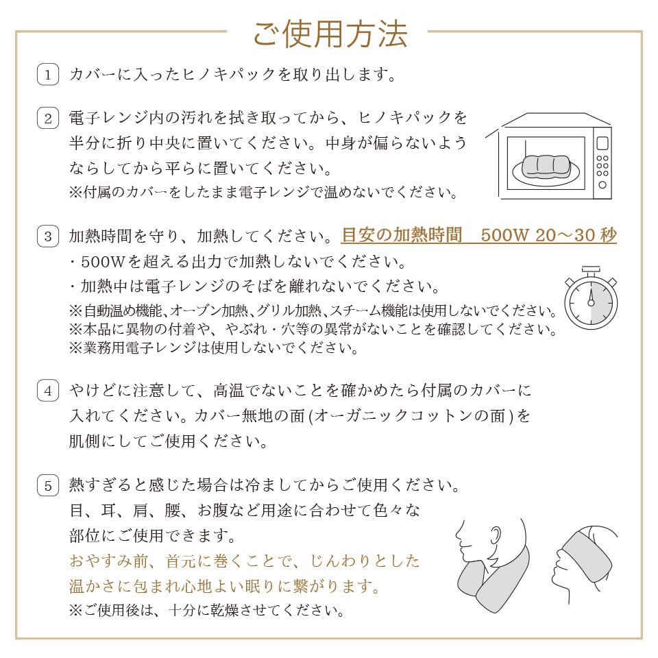 ・再度、加熱する場合は、必ずヒノキパックを室温に戻してから行ってください。