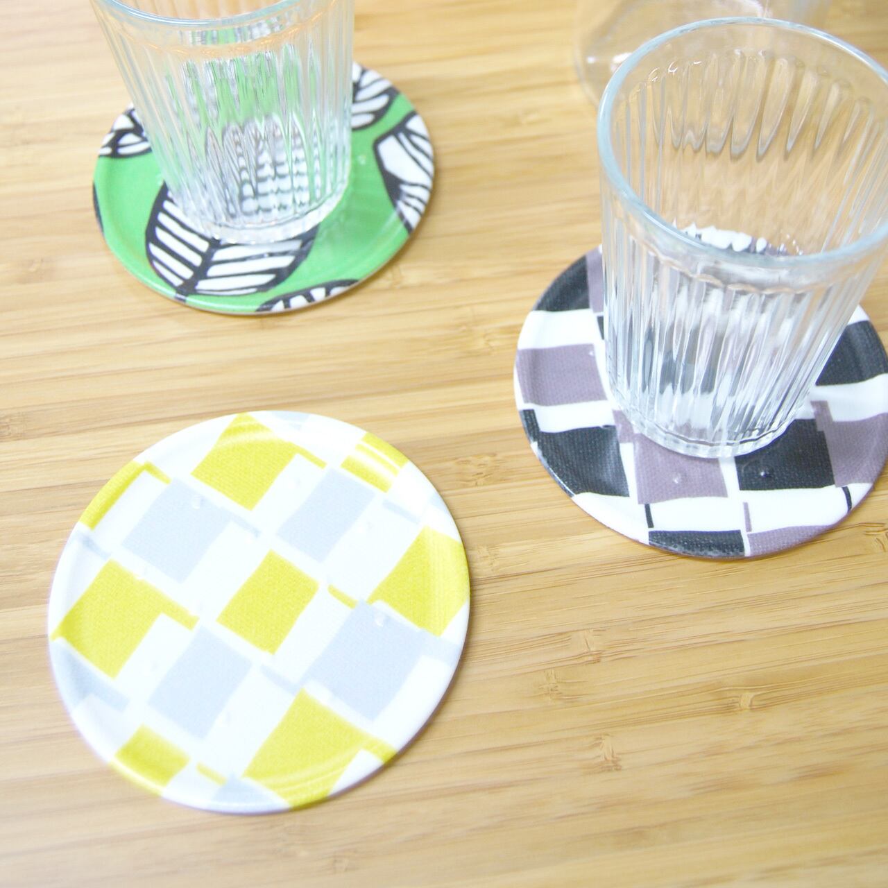 日本で製織、プリント、縫製、加工された完全日本製の北欧デザインのコースターです。